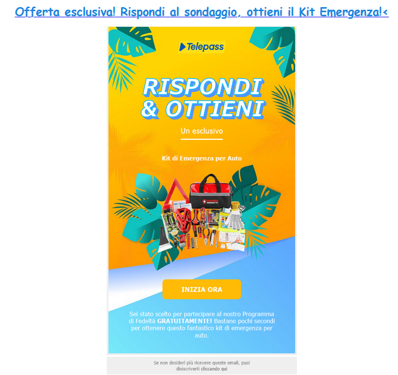- Offerta “troppo bella per essere vera” (kit di emergenza gratuito)